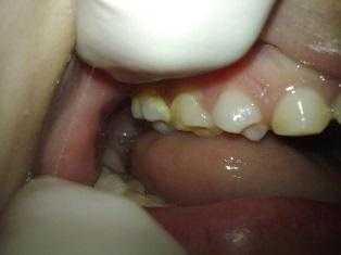 Аккумуляция налета и бактериального роста у подобных больных прогрессирует также вследствие трудностей обучения мануальным навыкам чистки зубов. В случае с данным пациентом трудность или даже невозможность самостоятельного ухода за зубами вызвана умственной отсталостью и ограниченным доступом к ротовой полости. Эти факторы и способствовали формированию твердых отложений.