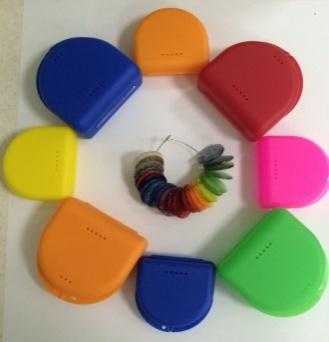 Зубные техники делают аппараты, уникальные не только с точки зрения здоровья, но и с точки зрения дизайна, чтобы сделать процесс лечения наших маленьких пациентов увлекательным и приятным. Чтобы заинтересовать ребенка, ему предлагается выбрать несколько цветов (рис. 1), которые будут скомбинированы в аппарате и веселую картинку (рис.2). Кроме этого, яркая коробочка для хранения поможет содержать любимый аппарат в целости и сохранности (рис.2).