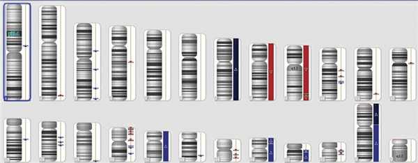 Для хромосомного микроматричного анализа ткани опухоли поджелудочной железы из парафиновых блоков использована микроматрица Oncoscan («Affymetrix», США). Все этапы лабораторного исследования проведены в соответствии с протоколом производителя («Affymetrix», США). Анализ данных проводился с помощью программы ChAS, версия 3.0.