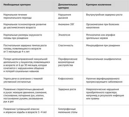 Таблица 2 | Диагностические критерии атипичного синдрома Ретта [1]