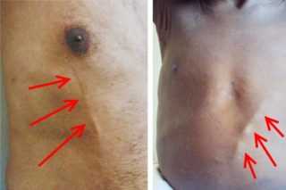 - В области грудных желез формируется вытянутое твердое утолщение, длина варьируется от 3 до 30 мм, перемещается оно вместе с кожными покровами, при попытках прикоснуться возникает выраженный болевой синдром.