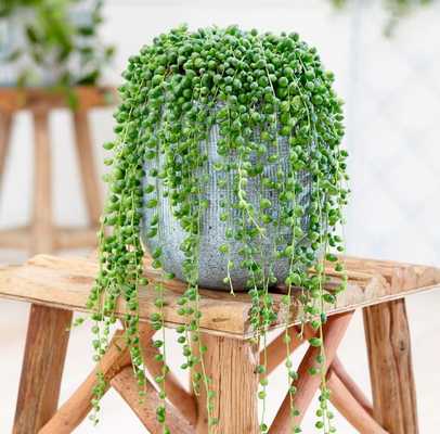 Одним из видов крестовника довольно популярным в комнатной культуре является крестовник Роули. Его длинные стебли покрывают мясистые маленькие листовые пластинки шарообразной формы. Благодаря необычному внешнему виду побегов с листвой в народе данный цветок еще именуют «жемчужные нити», так как куст похож на нити с нанизанными на них бусинами. Крестовник Роули является суккулентным растением, в связи с чем ухаживать за ним совсем несложно. Именно поэтому он отлично подходит даже неопытным цветоводам.