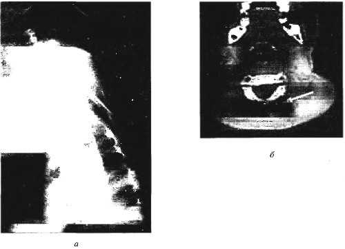 Рис. 45.19. Омовертебральная кость на рентгенограмме (а) и компьютерной томограмме (б)
