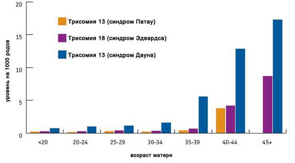 Синдром Дауна развивается при полной трисомии по 21 хромосоме. Мальчики и девочки с этой патологией рождаются с одинаковой частотой, а в среднем на свет появляется 1 ребёнок с синдромом Дауна на 700 живорожденных детей. Достоверно известно, что на вероятность зачатия ребёнка с такой трисомией значительное влияние оказывает возраст матери. Чем старше женщина, тем выше риски.