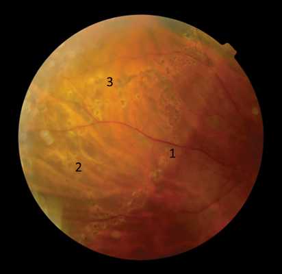Рис. 2. Глазное дно пациента с посттромботической ретинопатией