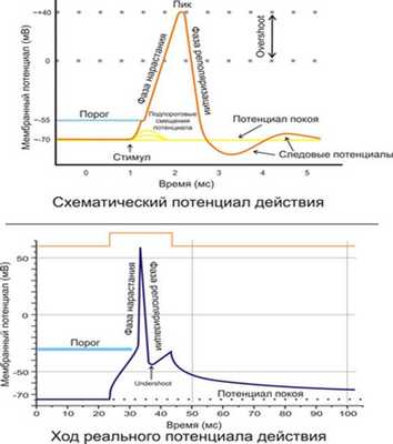 Мембранный потенциал и потенциал действия и его фазы. Различие между фазами возбуждения