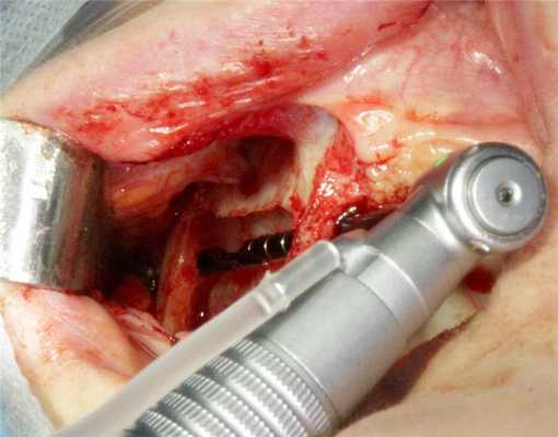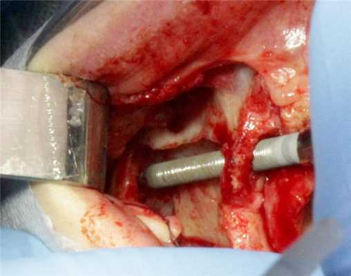 - Препаровка костного ложа для верхнего имплантата (фото 9)