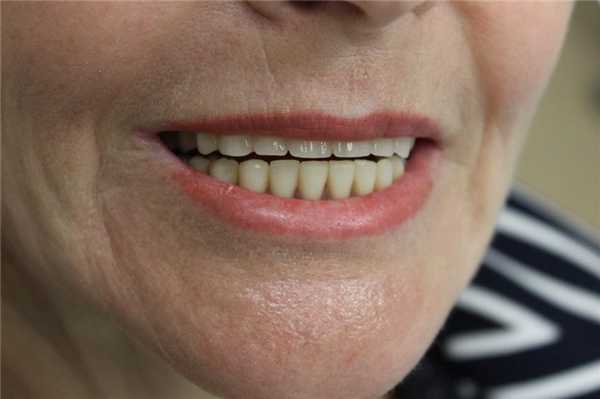 55-летняя женщина обратилась за стоматологической помощью по поводу нынешнего неудовлетворительного состояния ее зубов. Предыдущий стоматолог посоветовал ей провести экстракцию всех безнадежных зубов, но больной при этом было не весьма комфортно осознавать, что ей в дальнейшем все время придется использовать полный съемный протез. В ходе клинического осмотра были обнаружены симптомы умеренного и тяжелого пародонтита, множественные кариозные поражения, а также имеющиеся дефектные реставрации. У пациентки наблюдалось нарушение индивидуальной высоты межчелюстного соотношения, в области отдельных фронтальных зубов прогрессировал феномен Попова-Годона, но, в то же время, передние зубы обеспечивали адекватную поддержку тканям губ (фото 1).