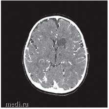 Мальчик А., 5 лет. Госпитализирован в реанимационное отделение 06.06.05 на 3-й день болезни с жалобами на повышенную температуру (37.7°С), нарушение сознания. Из анамнеза известно, что с 27.05.05 по 03.06.05 перенес ветряную оспу в нетяжелой форме, после чего 1 день посещал детский сад. На 10-й день от начала заболевания - вновь подъем температуры до 38°С, однократная рвота. На следующий день на фоне усиливающейся лихорадки начались судороги. Мальчик госпитализирован в районную больницу, где, несмотря на проводимую терапию, состояние ухудшилось. 06.06.05 появились выраженная сонливость и головная боль, ребенок отказался от еды. На 2-й день заболевания ребенок переведен для дальнейшего лечения в реанимационное отделение.