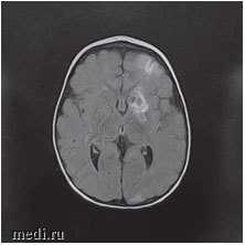 Мальчик М., 6 лет. Госпитализирован в неврологическое отделение 29.06.05 на 3-й день болезни с жалобами на судороги, нарушение движения в правых конечностях, повышенную температуру (38.6° С), сонливость, вялость, плохой аппетит. Из анамнеза: 19.06.05 снимал клеща, ползущего по правой руке. Специфическую профилактику не проводили. Заболел остро 25.06.05, когда повысилась температура до 39.5°С, развился судорожный припадок, присоединилась слабость в правых конечностях. Мальчик был госпитализирован в 1-й день болезни в районную больницу. Лихорадка сохранялась на фебрильных цифрах, несмотря на проводимую терапию, положительной динамики не отмечалось. В цереброспинальной жидкости содержание белка было в пределах нормы, цитоз - 581/3 (91 сегмент). Кровь на антитела вирусного КЭ: IgM - положительные, IgG - отрицательные. На 3-й день заболевания ребенок переведен для дальнейшего лечения в реанимационное отделение.
