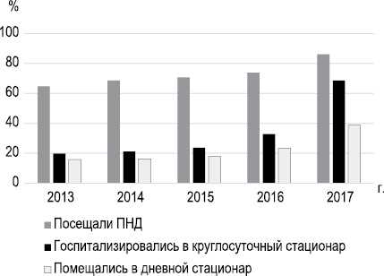 С вопросами терапии тесно связано поведение пациентов в отношении их обращаемости за психиатрической помощью в учреждения разного уровня. Эти данные представлены на рис. 6.