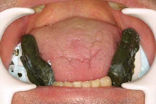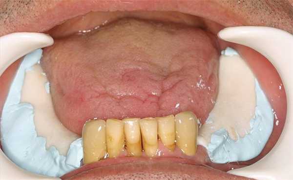 Изначально пациенту был предложен вариант изготовления протеза с опорой на имплантаты, а также иссечение слизистого гребня. Мужчина не изъявил желания подвергаться хирургическому вмешательству, поэтому было решено изготовить полные съемные протезы на верхнюю и нижнюю челюсть с иной техникой снятия оттиска.