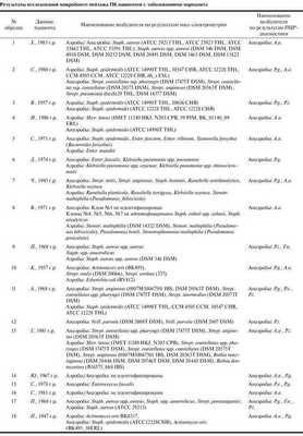 Таблица 2. Данные о микроорганизмах у больных пародонтитом средней тяжести в разных биотопах полости рта (n=16)