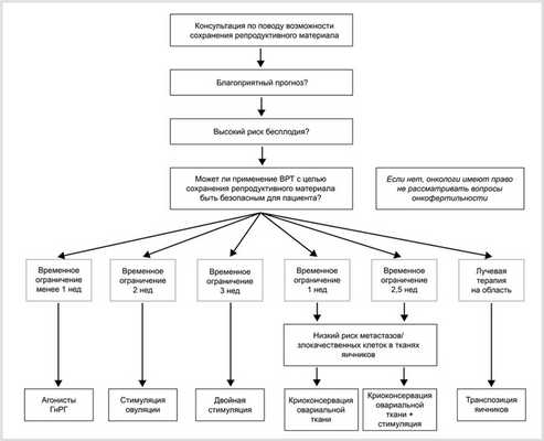 Эволюция вспомогательных репродуктивных технологий (ВРТ) способствовала разработке методов и стратегий для сохранения фертильности у больных раком. Они включают в себя фармакологическую защиту яичников от гонадотоксичного воздействия химиотерапии с применением агонистов гонадотропин-рилизинг-гормона (аГнРГ), транспозицию яичников, криоконсервацию ооцитов, эмбрионов или ткани яичника [6]. В 2013 г. Американское общество клинических онкологов разработало практическое руководство по оптимизации сохранения фертильности у онкологических больных, одна из рекомендаций которого - приступить к сохранению фертильности до начала гонадотоксичного лечения [4].