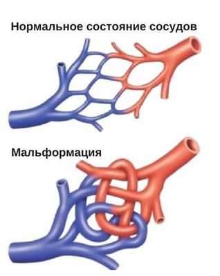 Клиническая картина артериовенозной формы (мальформации) зависит от места расположения сосудистой аномалии. Врожденные, но маленькие по размеру пороки сосудов малого круга кровообращения у детей обычно поначалу остаются незамеченными и «ждут своего часа» до начала прогрессирования. А час их «старта», как правило, совпадает с периодом полового созревания, достигая полного «расцвета» к 20 - 30 годам. И если патологическое изменение касается сосудов малого круга, степень тяжести заболевания находится в зависимости от количества сбрасываемой крови из венозной системы в артериальную. В подобных ситуациях болезнь быстро заявит о себе снижением уровня кислорода в крови - гипоксемией, которая в короткие сроки приобретет хроническую форму. Следует заметить, что клиника артериовенозных мальформаций вообще (в большинстве случаев) тяжелая: