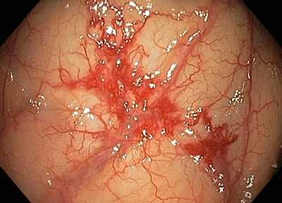 Сложнее обстоят дела с диагностикой сосудистой дисплазии кишечника - при рождении она не видна, кроме этого, многие специалисты склоняются к мысли, что патология носит приобретенный характер, правда, причины в большинстве случаев остаются, как говорится, «за кадром». Между тем, учитывая широкую распространенность патологического изменения сосудов кишечника среди взрослого населения, нельзя обойти вниманием главные симптомы данного процесса, это: