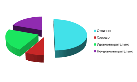Подводя итог исследованию, мы разделили отдаленные результаты операции на «отличные» - жалоб, связанных с операцией, нет, жизненная и трудовая деятельность без ограничений; «хорошие» - одна жалоба, связанная с операцией, жизненная и трудовая деятельность незначительно ограниченна; «удовлетворительные» - до трех жалоб, связанных с операцией, ограничение трудовой и жизненной деятельности; «неудовлетворительные» - более трех жалоб, связанных с операцией одновременно, существенное ограничение трудовой и жизненной деятельности. Результаты показаны на рис. 3.