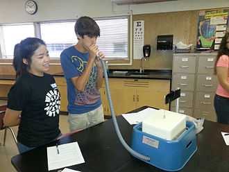 - В 1681 году Борелли попытался измерить объем воздуха, вдыхаемого за один вдох. Он собрал цилиндрическую трубу, частично заполненную водой, с открытым источником воды, входящим в нижнюю часть цилиндра. Он закрыл ноздри, вдохнул через выходное отверстие в верхней части цилиндра и измерил объем воздуха, вытесненного водой. В настоящее время эта методика очень важна при определении параметров объема легких. [2]