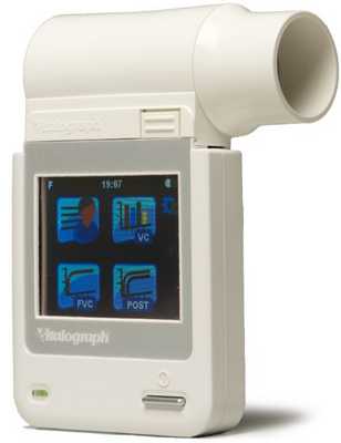 2) Электронные, позволяющие выстраивать графики. Такой спирометр определяет график выдыхаемого воздуха в заданный период времени. Некоторые модели показывают данные поток-объём.