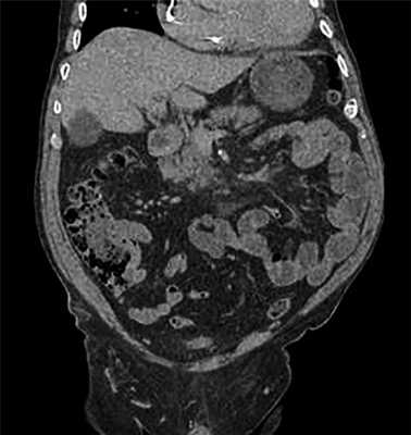 Рис. 1. МСК-томограмма органов брюшной полости больного А.