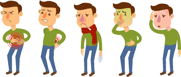 Инфекционные заболевания данной группы начинаются остро. Ведущими симптомами являются интоксикация, недомогание, боль в животе, а также рвота. Далее присоединяется частый жидкий стул. Сопровождается инфекция незначительным подъемом температуры.