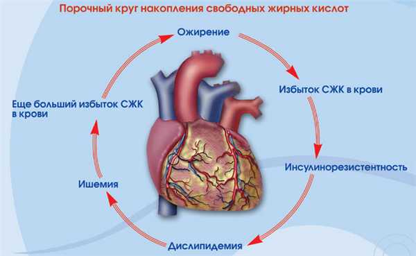 4. Повышение концентрации СЖК в печени нарушает метаболизм холестерина и приводит к ишемической болезни сердца.