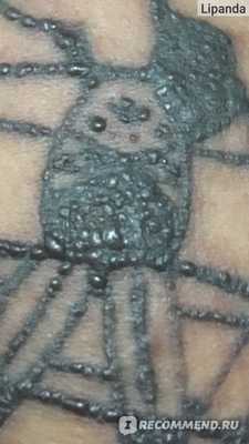 "Мастер" приступил к работе. Было очень больно, но я мужественно терпела. Набивал он мне ее час-полтора. Я была в предвкушении. Наконец, он закончил. И я пошла к зеркалу смотреть результат. Мне показалось, что с пауком что-то не так. Но ведь это была полноценная татуировка, партак! Я стала крутой! И я забила на тот факт, что у паука было разное количество ног и выглядел он просто отвратительно! Давайте я познакомлю вас с ним.