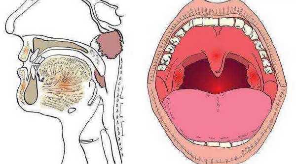 Миндалины, которые можно увидеть между дужками мягкого неба, увеличиваются в размерах. Лимфоидная ткань, разрастаясь, мешает человеку жить нормально: появляется храп, неудобство при глотании пищи, гнусавость, плохая артикуляция.