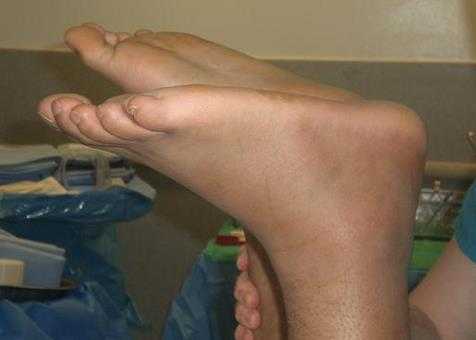 - Пассивная плантарфлексия меньше чем на здоровой ноге (обычно на 15-20 градусов)