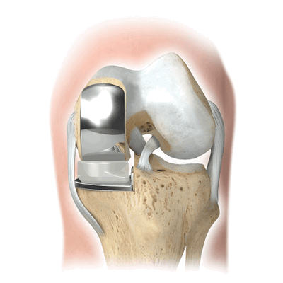 Мы используем исключительно так называемые поверхностные протезы, в которых происходит замена поверхностей бедра и голени в суставе, при этом обе части механически не связаны между собой. Механическое соединение обеих компонентов на практике себя не оправдало, так как из-за износа материала это часто приводило к переломам