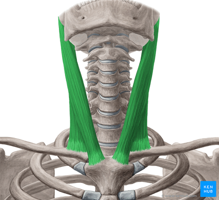 Тянет сосцевидный отросток вниз к той же стороне, что вызывает поворот подбородка вверх к противоположной стороне. При двустороннем сокращении мышцы сгибают шейный отдел.