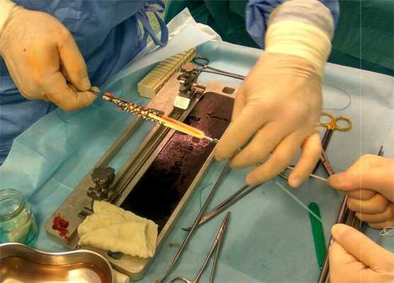 Подготовка аутотрансплантата для пластики передней крестообразной связки по поводу её разрыва.