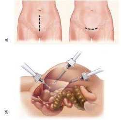- Лапаротомия — открытый метод, через разрез передней брюшной стенки.