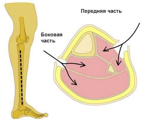 и медиально, межкостной фасцией дорсально и подошвенным апоневрозом плантарно),
