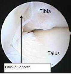 Артроскопическая резекция связки Бассета. В случае когда интраоперационно обнаруживается избыточный контакт связки Бассета с таранной костью, на всём протяжении движений в голеностопном суставе, с повреждением суставного хряща, или подворачиванием гипертрофированной связки под передний край большеберцовой кости показано её иссечение.