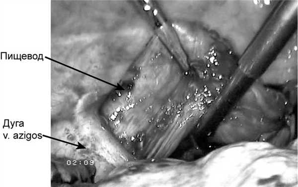 Рис. 1. Выделение пищевода над дугой непарной вены.