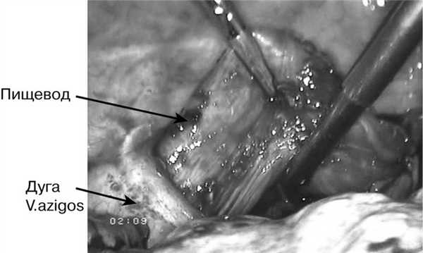 Рис. 1. Интраоперационная фотография. Выделение пищевода над дугой непарной вены.