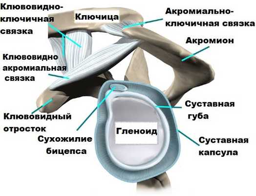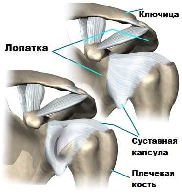 Внутри сустава также находится синовиальная жидкость, которая смазывает и увлажняет суставной хрящ, а также обеспечивает его питание. Сустав окружен плотной капсулой, стенки которой укрепляют прочные связки. Связки удерживают лопатку и плечевую кость друг относительно друга, тем самым обеспечивая стабильность плечевого сустава.