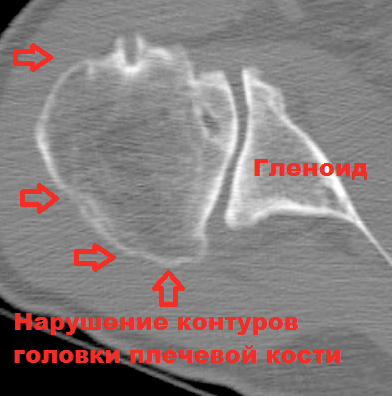 Также при определенных видах переломов головки и шейки плечевой кости может произойти повреждение кровеносных сосудов питающих кость. В результате нарушения питания кости происходит ее постепенное разрушение, которое в медицине называется асептический некроз головки плечевой кости.
