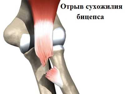 Разрывы сухожилия бицепса в области локтевого сустава встречаются не очень часто. Причиной их чаще всего является резкая нагрузка и они обычно вызывают более выраженное нарушение функции двуглавой мышцы, чем повреждение ее сухожилий в области плечевого сустава.