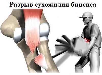 Повреждение сухожилия бицепса в области локтевого сустава обычно происходит при насильственном разгибании локтевого сустава при одновременном сопротивлении этому движению. Реже сухожилие может рваться при сгибании локтевого сустава с нагрузкой.