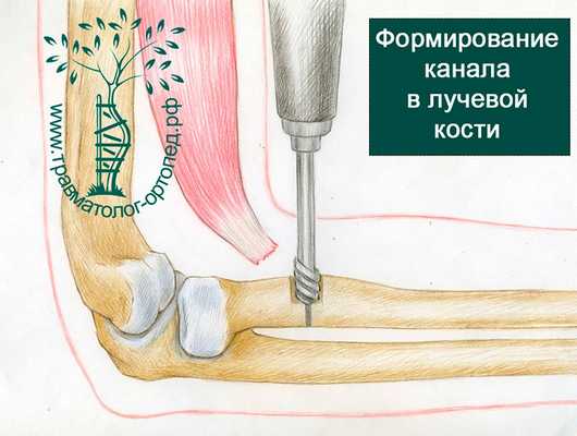 Выделение части поврежденного сухожилия и введение анкера в бугристость лучевой кости