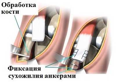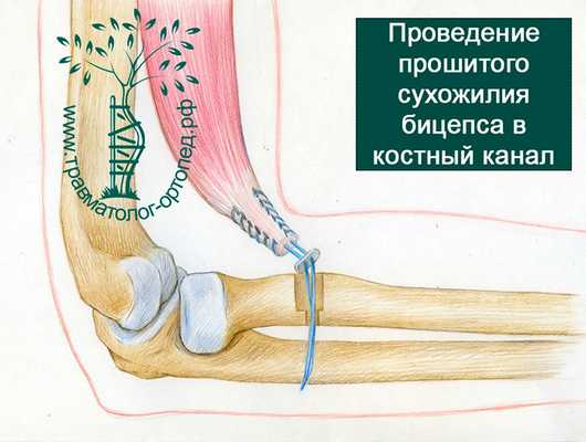 Техника, этапы операции восстановления дистального сухожилия двуглавой мышцы плеча