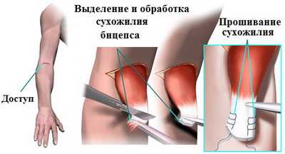 Варианты хирургических вмешательств. Разработано несколько методик минимально инвазивного восстановления сухожилия двуглавой мышцы. Обычно операции проводятся эндо- или артроскопически.
