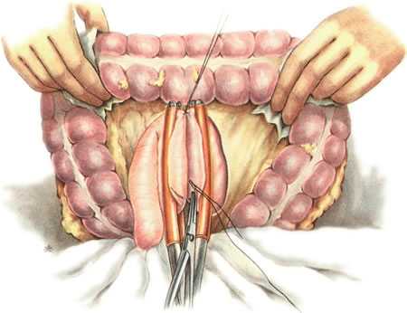 кишки, отступя примерно на 40—50 см от связки