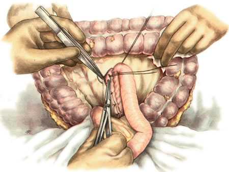 Преимущество этой операции состоит в том, что использование короткой петли для наложения анастомоза, а также фиксация приводящего колена кишки выше соустья предупреждают образование порочного круга.