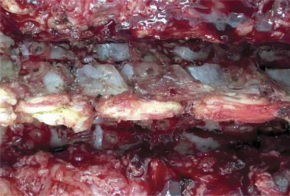 Рис. 2. Ламинотомированный костный лоскут, зафиксированный на своем месте.