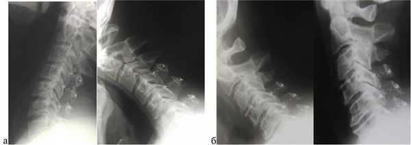 Для исключения сегментарной нестабильности всем больным до операции выполнялось функциональное рентгеновское исследование, в послеоперационном периоде через 3—6 мес выполнялось повторное исследование, не выявившее признаков нестабильности у пациентов нашей группы (рис. 11).