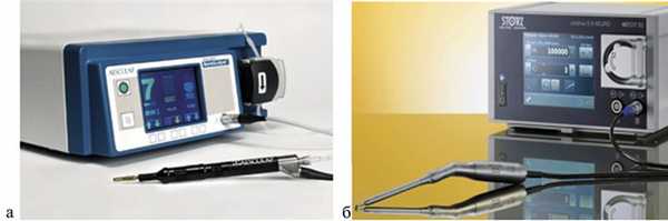 Рис. 1. Силовое оборудование, необходимое для выполнения ламинопластики с одномоментной фораминотомией. а — костный скальпель; б — высокоскоростной бор.