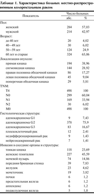 Таблица 1. Характеристика больных местно-распространенным колоректальным раком